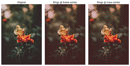 Centroid Displacement (Δr) → Mean displacement ≈ 0.0945, anchoring subject mass within ~10% of frame radius.